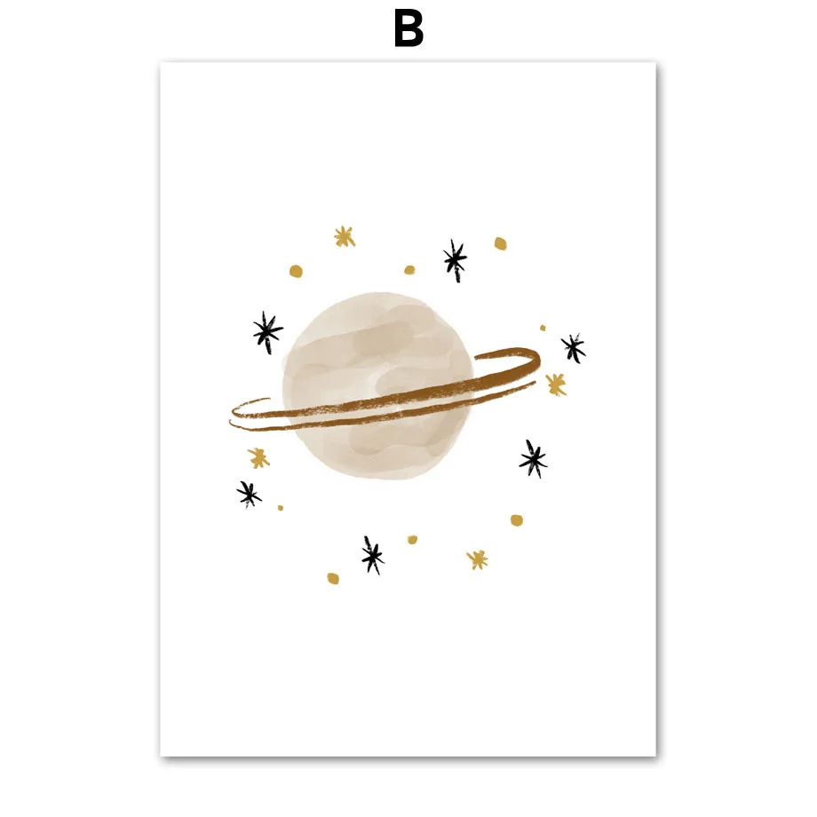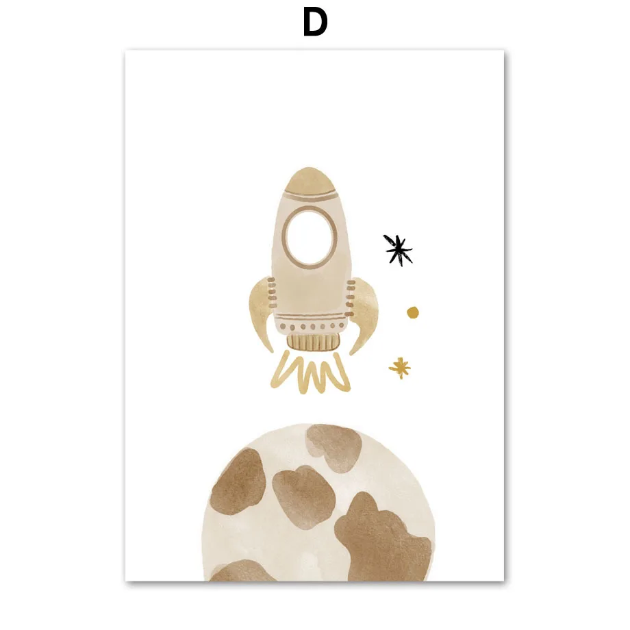Мультфильм ракета Луна, Звезды детский сад спальня украшения дома Водонепроницаемый настенные художетвенные росписи на холсте космическая планета детей плакат