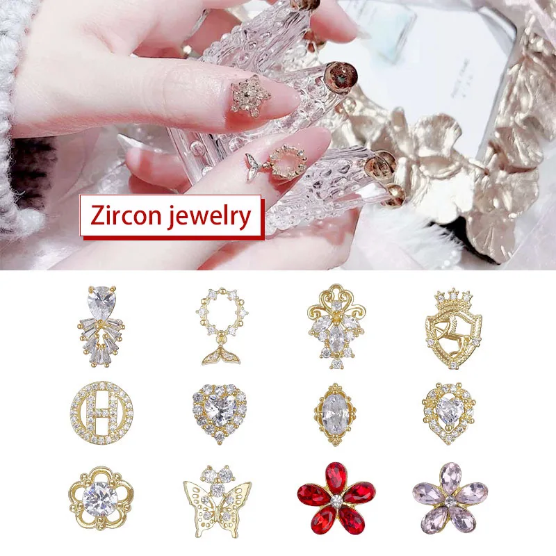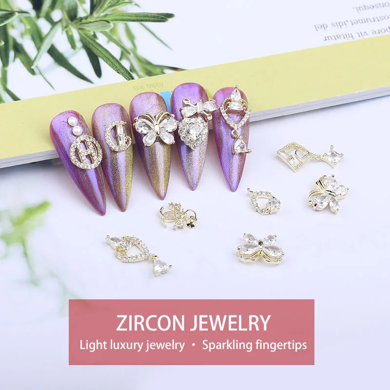 Блестящие кристаллы бабочка цветок Дизайн ногтей 3D Золотые украшения микро-инкрустация AAA кубический цирконий очарование ногтей Дизайн ногтей блестящие стразы Горячие