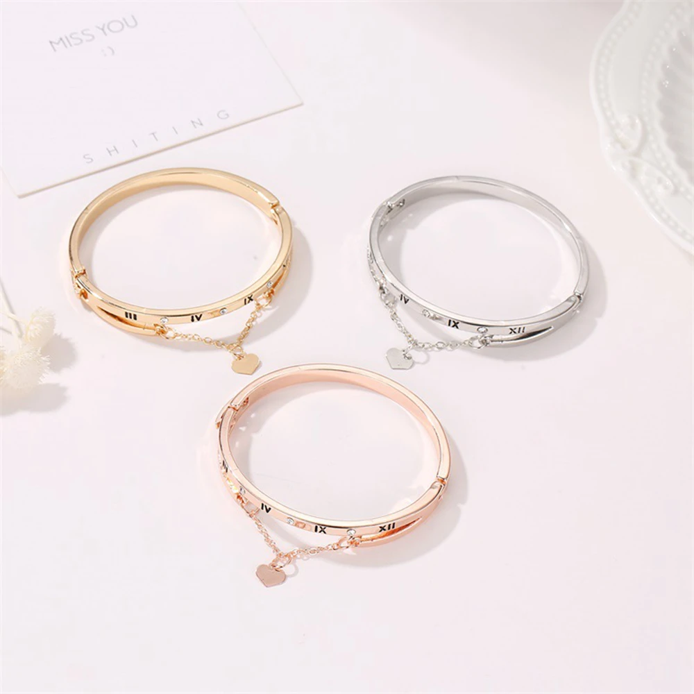 Корейские браслеты с подвесками в виде римских цифр и сердца для же...
