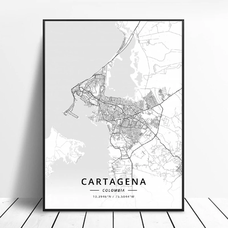 Черно-белый холщовый постер с принтом карты города стальбум, Соврем...