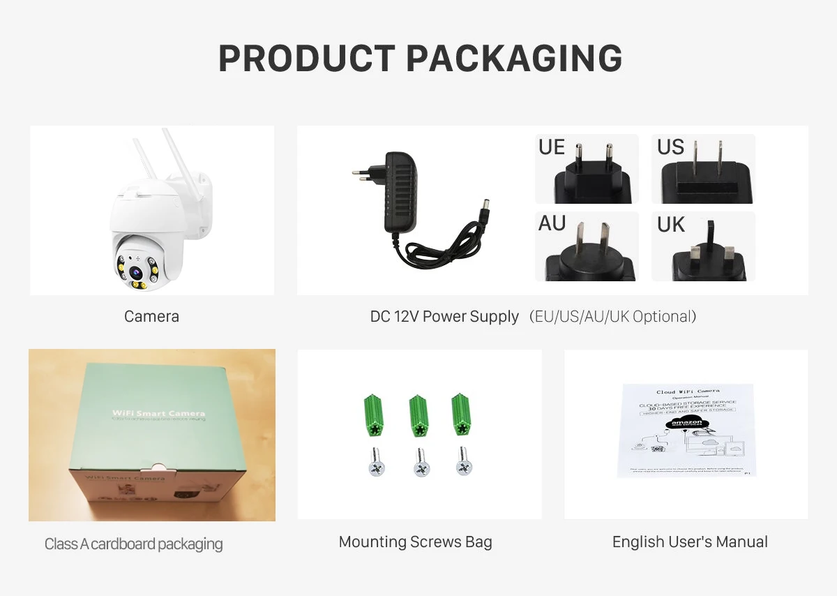 1 * Руководство пользователя1 * QW25 WIFI камера1 * Водонепроницаемый источник питания1 * комплект установки