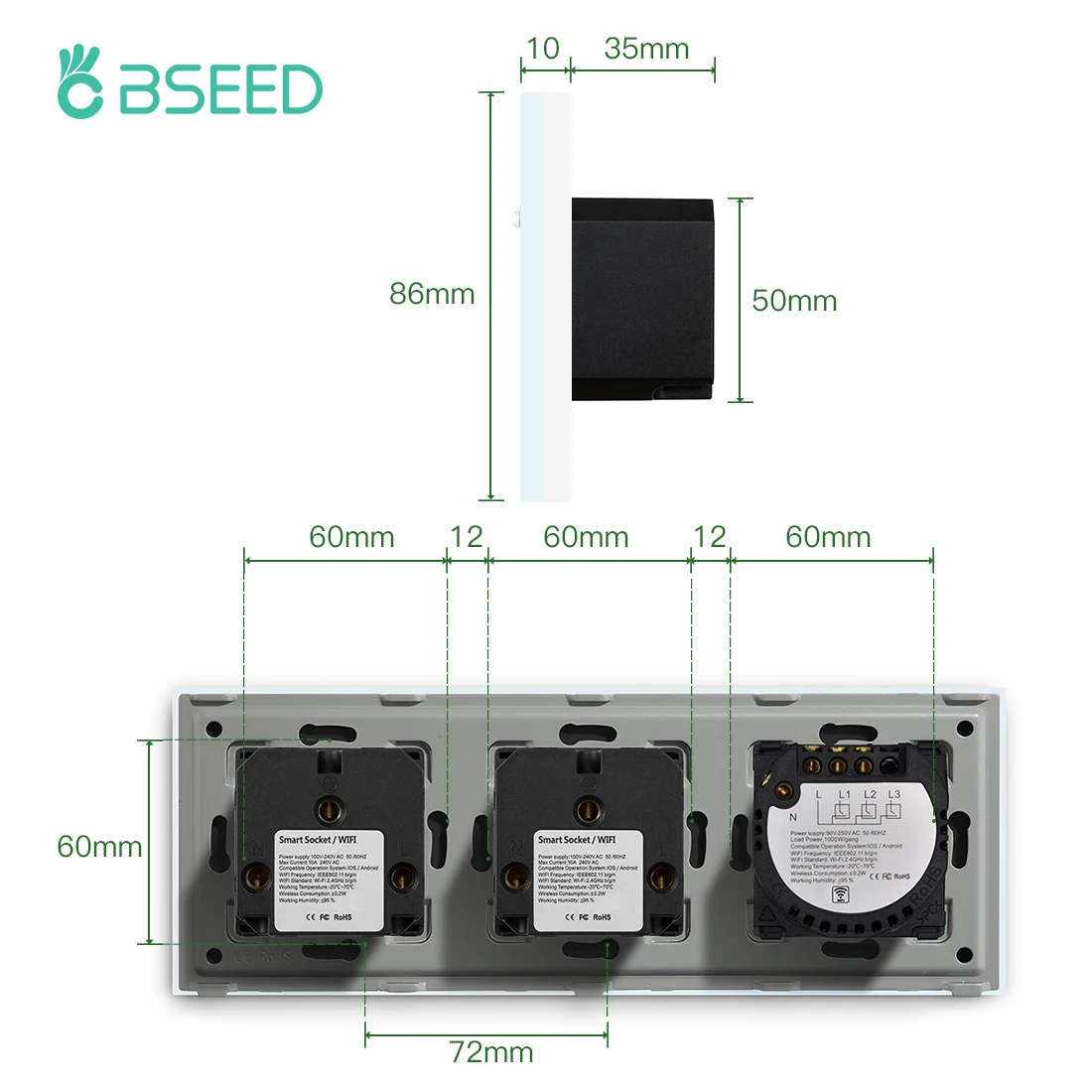 Переключатель света BSEED, Wi-Fi, стеклянный переключатель, 2 канала, 1234Way, Google Smart Life, двойная вилка Wi-Fi европейского стандарта, Синяя подсветка, сенсорный переключатель