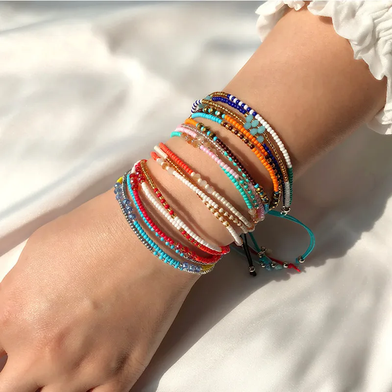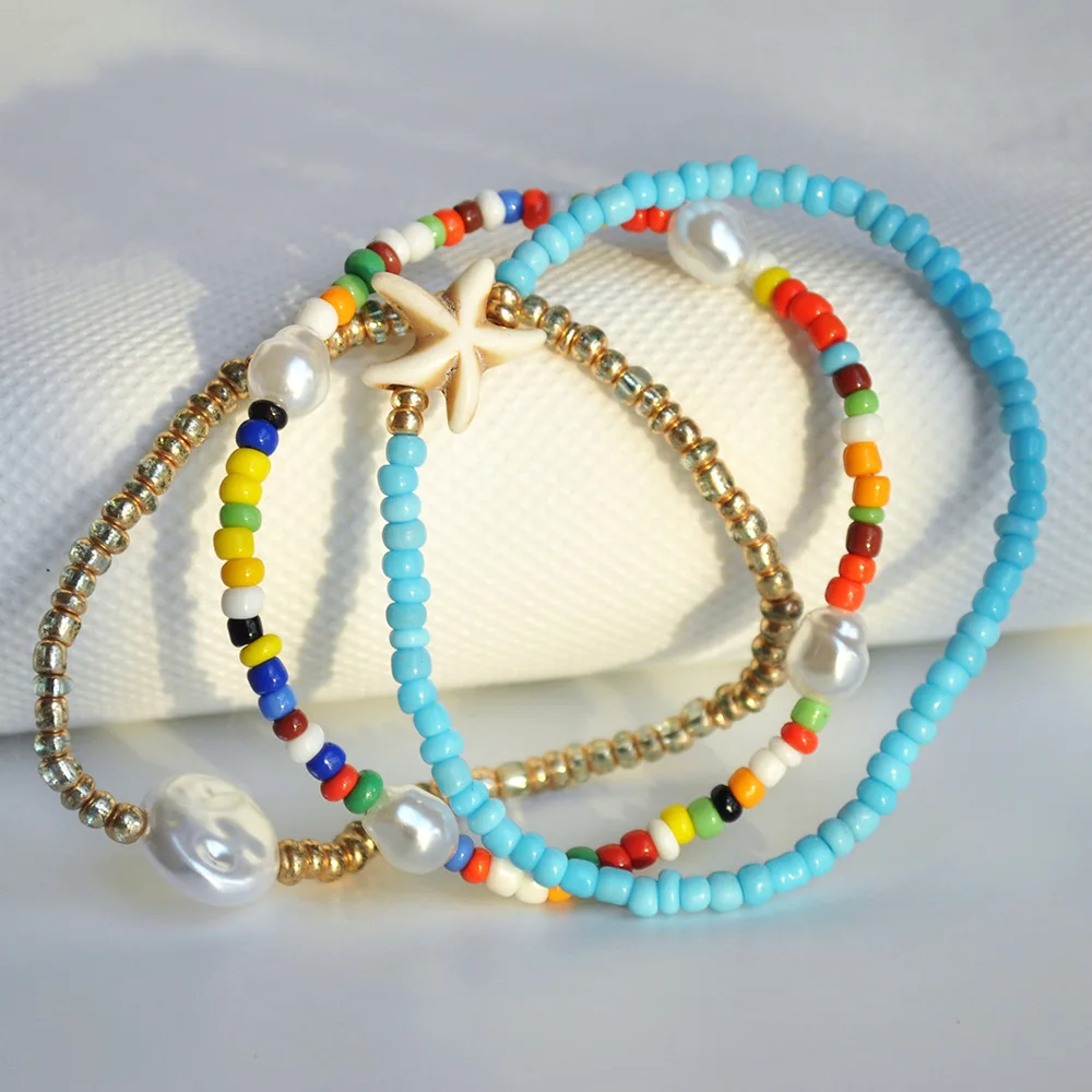 Женский плетеный браслет ZOSHI, браслет на ногу в богемном стиле с разноцветными бусинами, 3 слоя кристаллов, летняя пляжная бижутерия