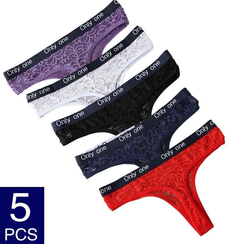 Женские стринги 5 шт.компл., нижнее белье, дышащие трусики, стринги, однотонные кружевные трусы, удобное красивое интимное белье с низкой талией