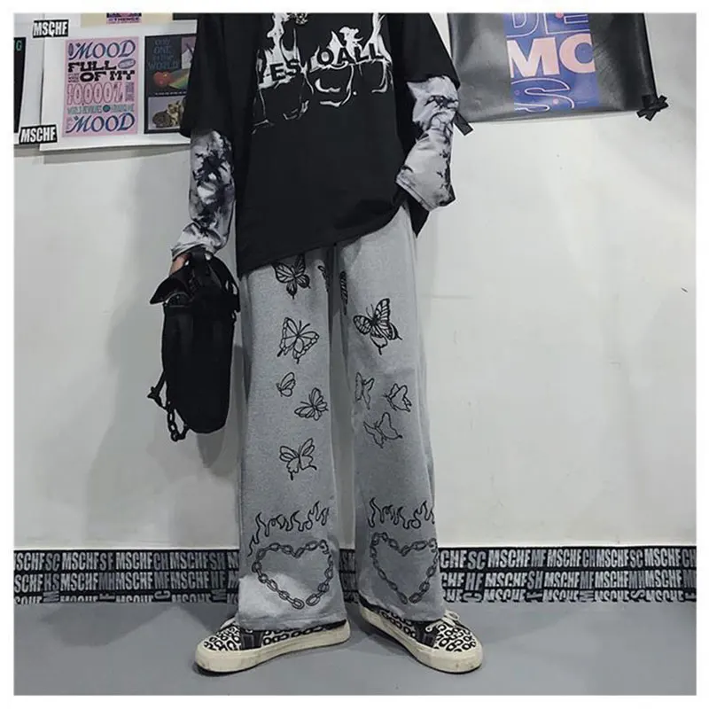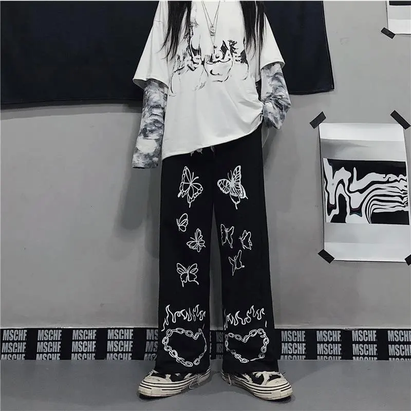 Женские брюки в стиле Харадзюку, Готическая уличная одежда, брюки с широкими штанинами в стиле хип-хоп, Y2k, Женские панталоны, винтажные брюки для бега, одежда в стиле Инди для девочек