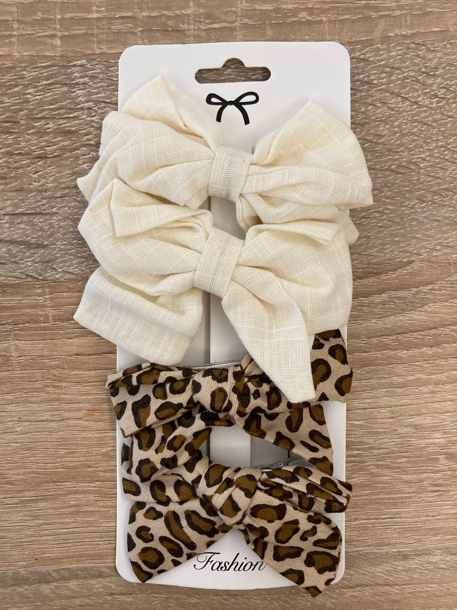 Заколки для волос с леопардовым принтом для маленьких девочек, зажимы с большими бантами и цветочным рисунком в клетку, Детские аксессуары для волос, 4 шт.
