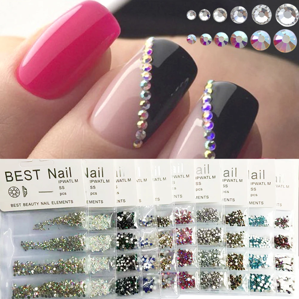 1200 шт.пакет Стразы для ногтей разных размеров SS4 SS6 SS8 SS10 декоративные камни для ногтевого дизайна блестящие драгоценные камни аксессуары для маникюра