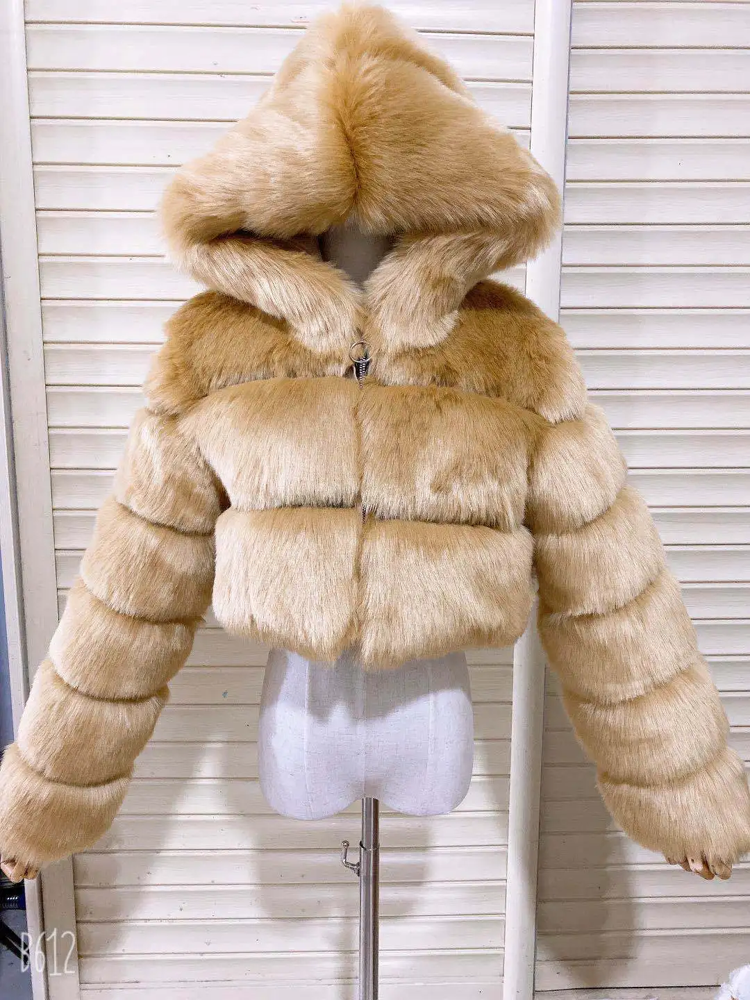 Модное зимнее Укороченное пальто с капюшоном, короткое плюшевое пальто, Женское пальто из искусственного меха, Женская пушистая куртка, винтажное пальто из искусственного лисьего меха