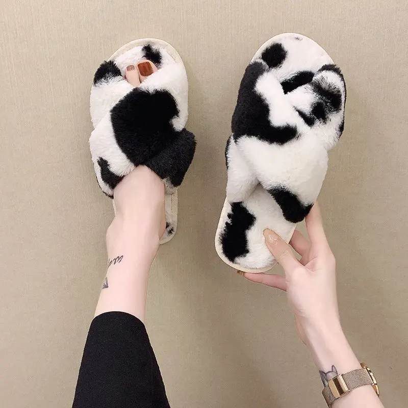Модные пушистые зимние сандалии с перекрестным плюшем сандалии с открытым носком мягкие на плоской подошве теплые Шлепанцы из искусственного меха домашняя женская обувь 2021