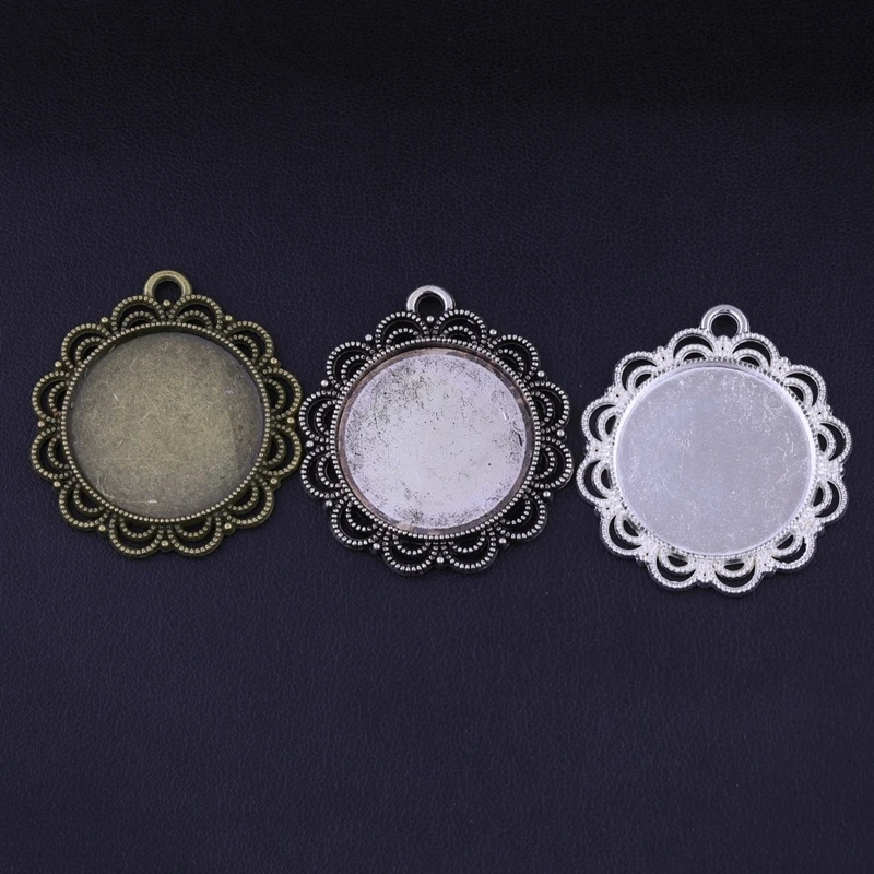 30 шт. винтажная основа Подвески 25 мм Пустой поднос безель с кружевом Подвески для DIY ювелирных изделий Аксессуары Компоненты оптом