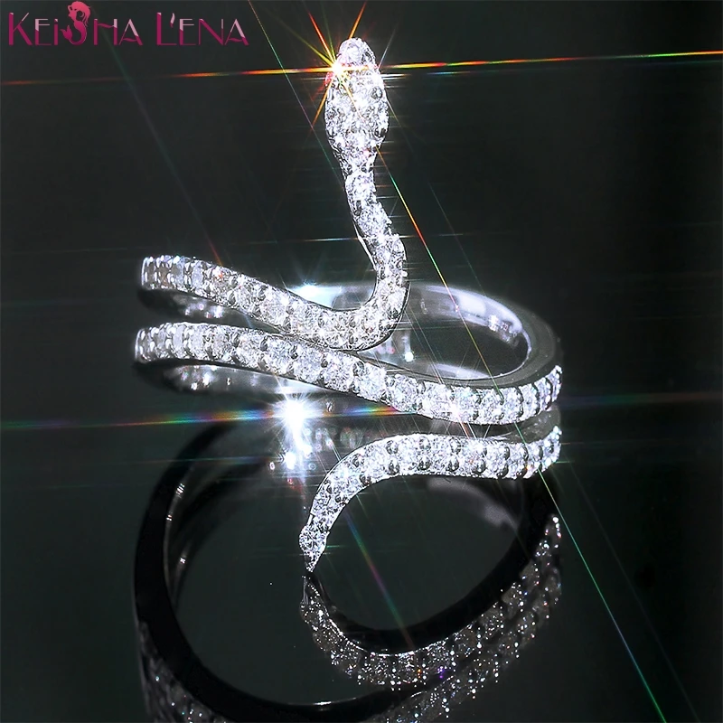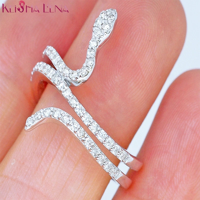 Кольцо женское в виде змеи, серебристого цвета, с фианитами