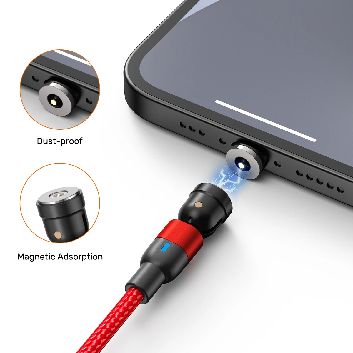 Спецификация продукта:● Длина: 1 м/2 м● Выход: 5 В/2,4 А (макс.)● Материал: алюминиевый сплав + нейлоновая оплеткаОписание товара:●540 градусов вращающийся магнитный дизайнСделайте ваш опыт лучшим способом зарядки телефона