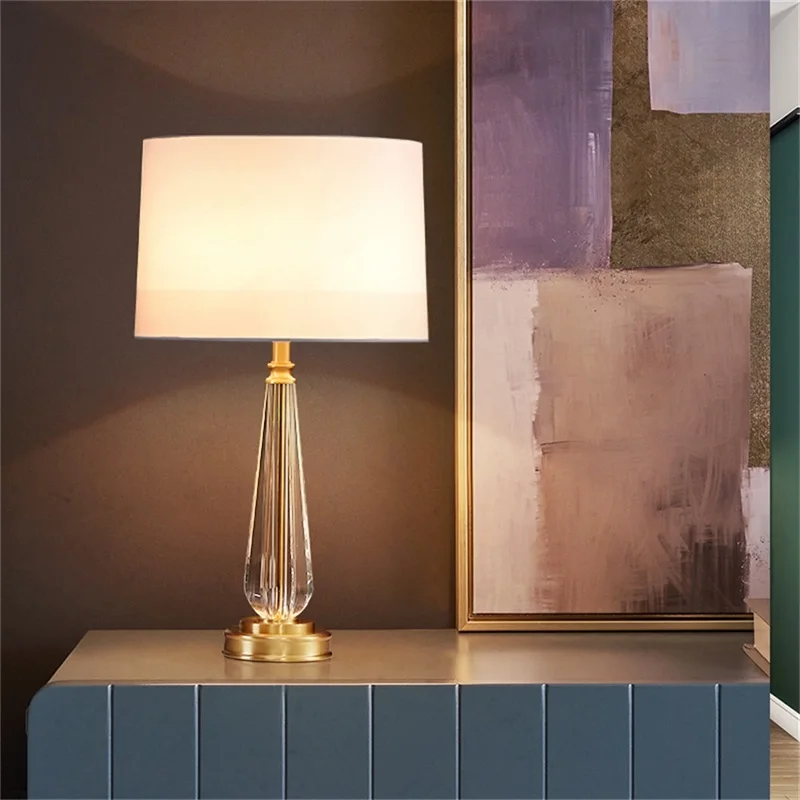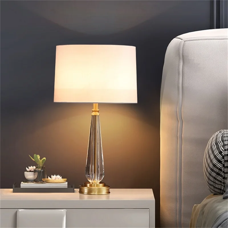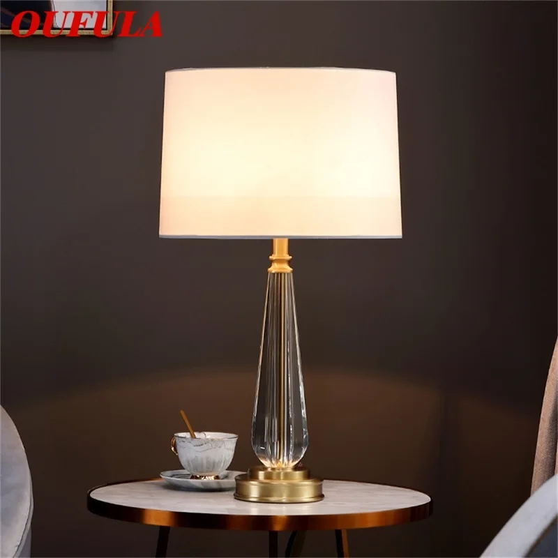Настольная лампа OUFULA, латунная, современная, простая, Хрустальная, светодиодная настольная лампа, украшение для дома