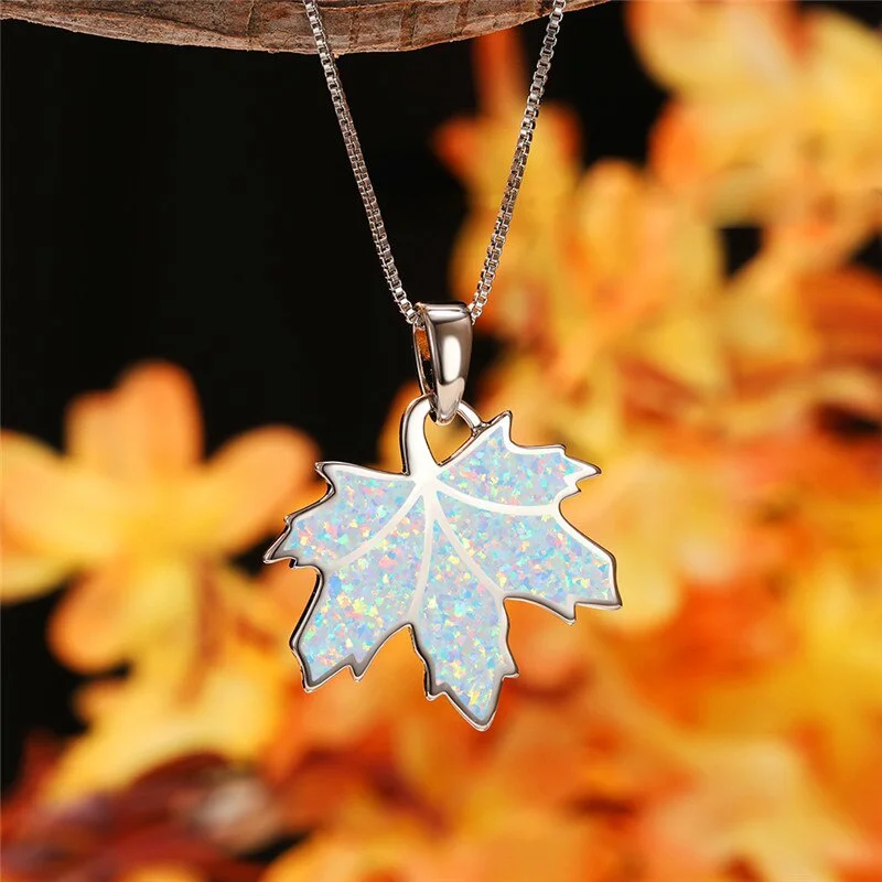 Новинка 2022, модное ожерелье с подвеской из искусственного опала для женщин, ювелирные изделия, аксессуары, подарок для девушки, милая Женская ожерелье кленовый лист