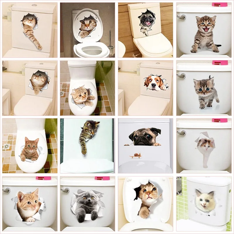 Наклейки на унитаз, домашний декор, забавные мультяшные животные, унитаз, роспись, искусство, яркие 3d котенок, щенок, сафари, ПВХ наклейки на стену