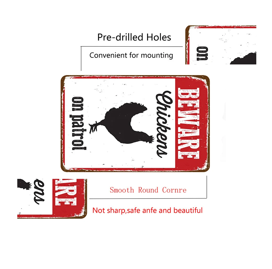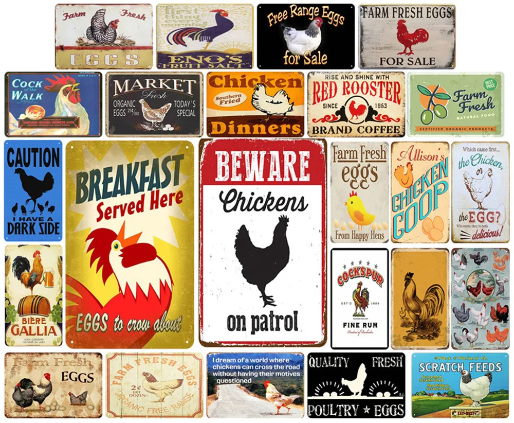 Металлическая пластина с винтажным рисунком Остерегайтесь кур на патруль! Ферма свежие куриные яйца качество петух для дом Декор потертый шик деревянный знак Тинтин