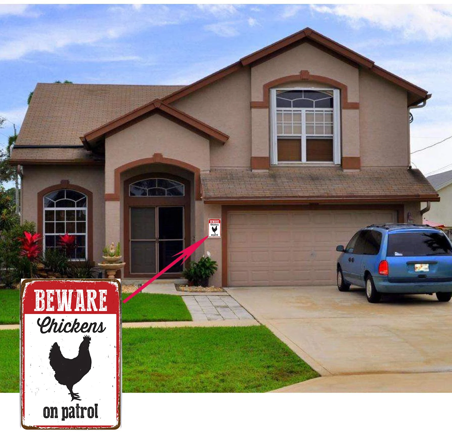 Остерегайтесь, цыплята на патруле, металлическая пластина с винтажн...
