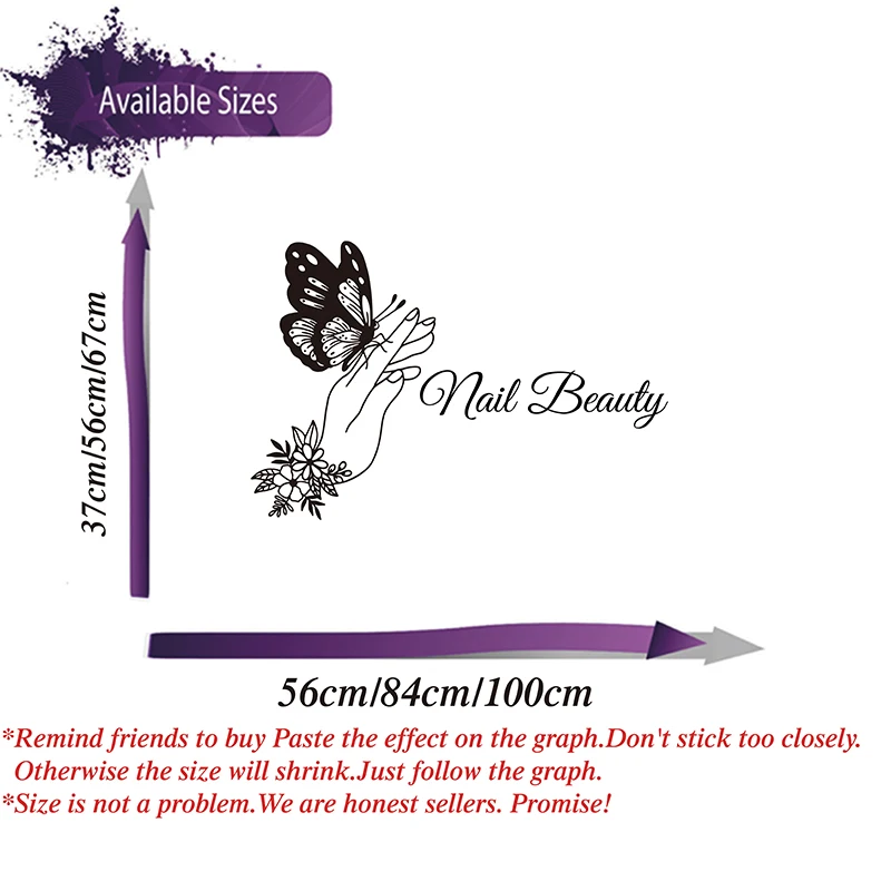 Красота ногтей салон бабочка рука Наклейка на стекло стену макияж