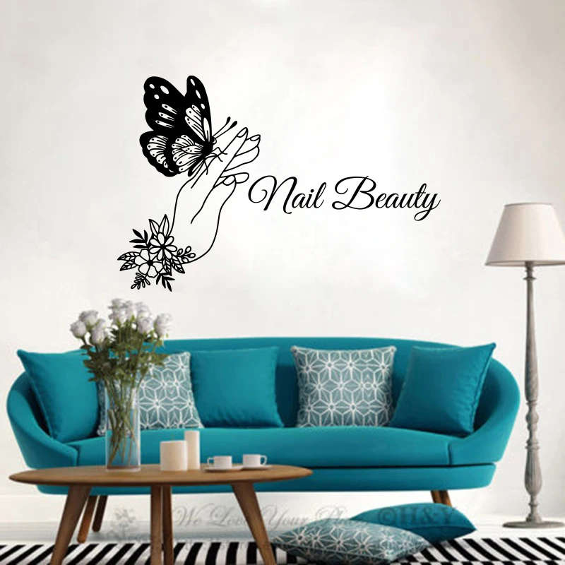 Красота маникюрный салон бабочка ручной Наклейка на стекло стену макияж набор для маникюра спа-салон оконная Наклейка на стену магазин Виниловые Декор