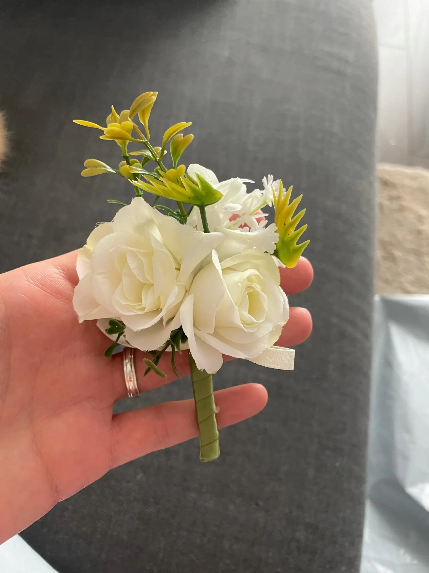 Белые шелковые розы, цветы, бутоньерка для жениха, мужские пуговицы...