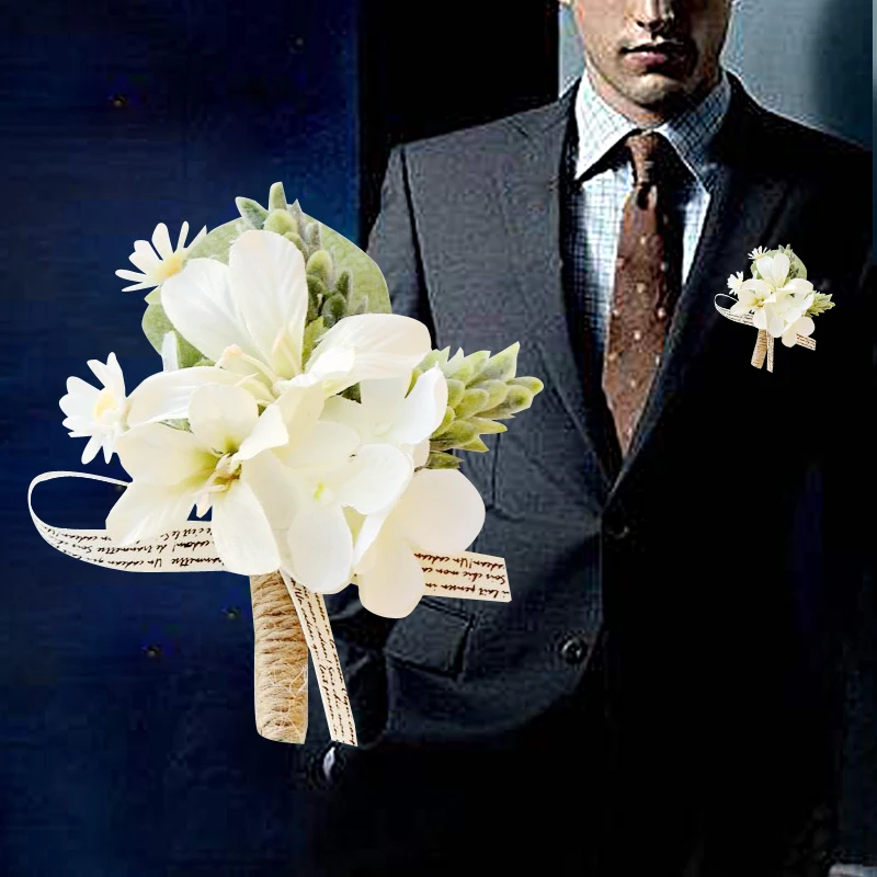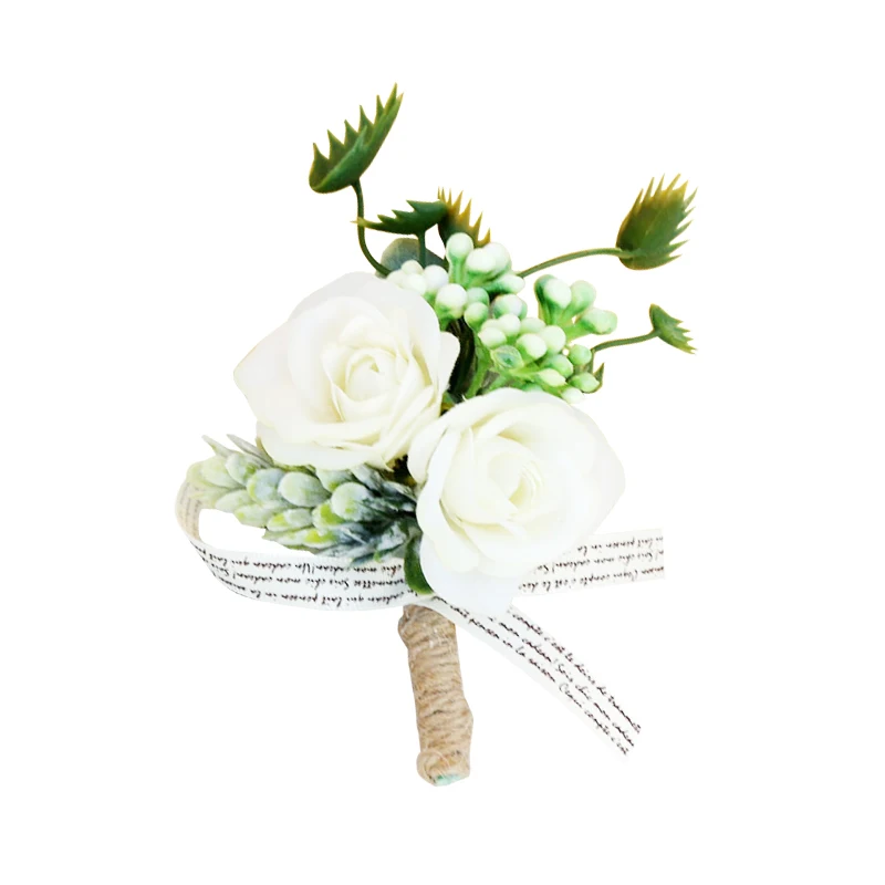 Искусственная белая роза, бутоньерка, свадебная корсажная бутоньерк...