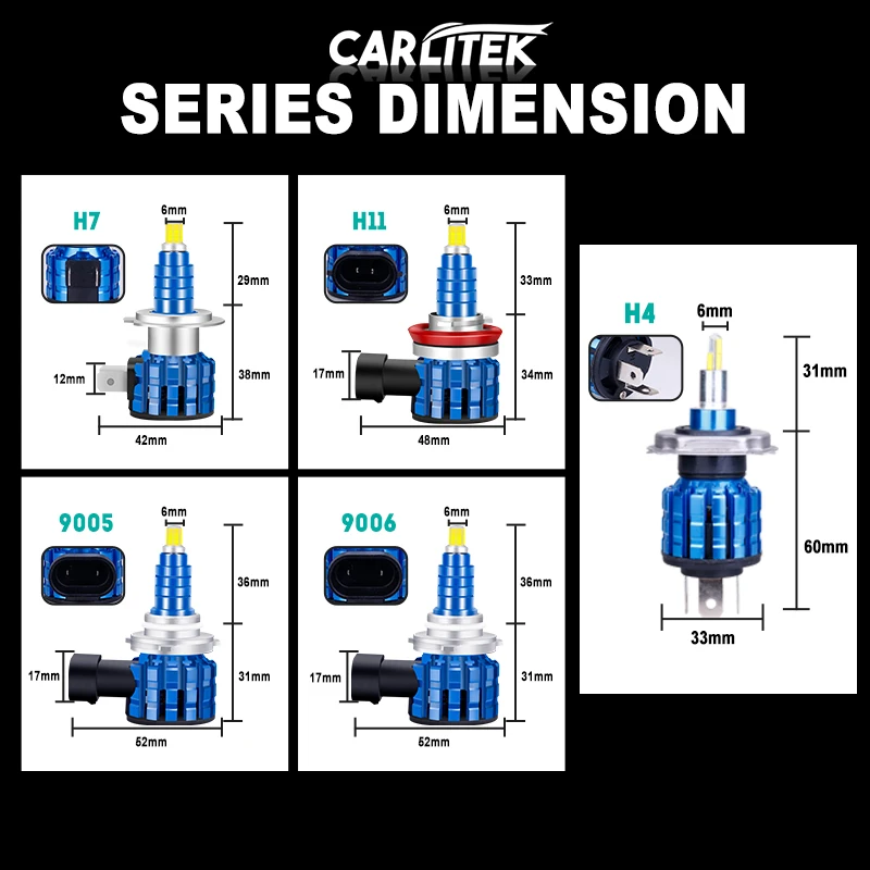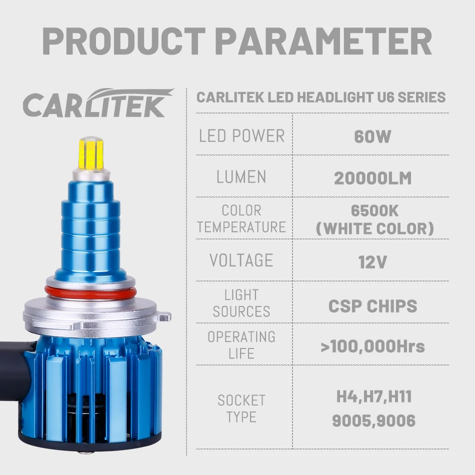 Автомобильная светодиодная лампа Carlitek H7 H4 H11 6000 лм, передс...
