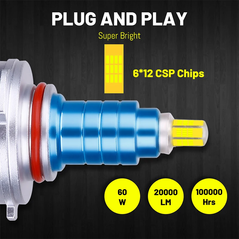 Светодиодные лампы H7 9012 лм CSP H11 H1 880 881 H4 HIR2 H8 9005 HB...
