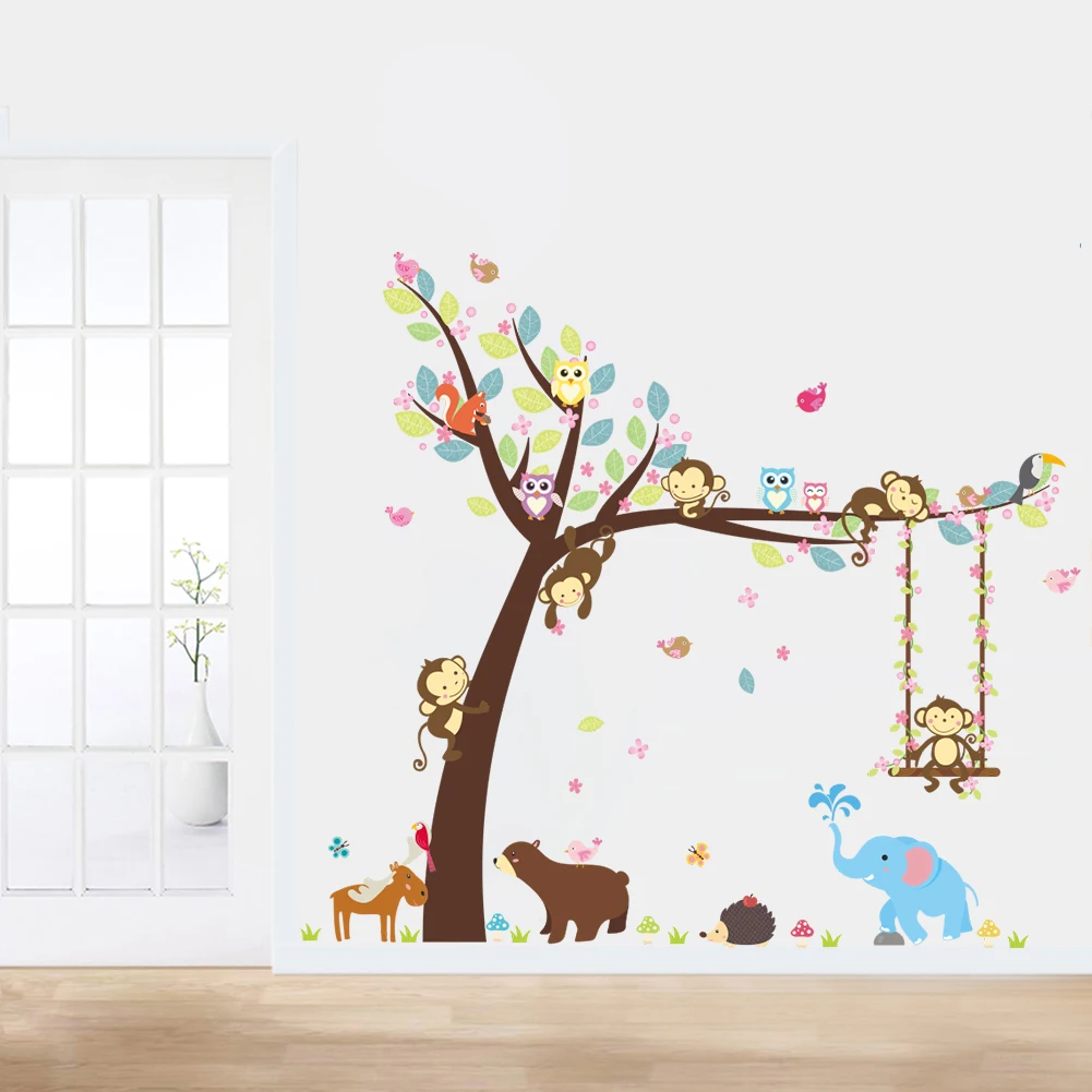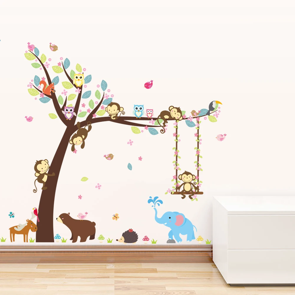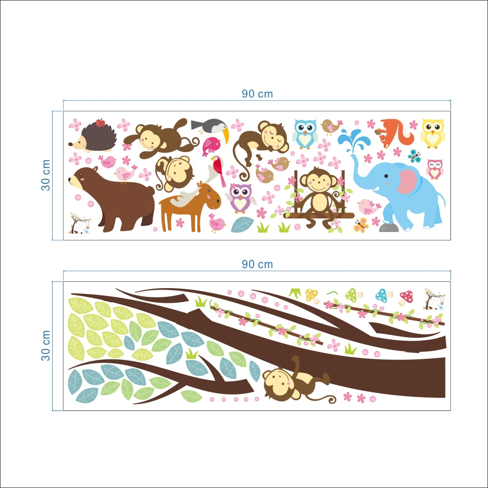 Лесные животные, наклейки на стену, обезьяна, медведь, дерево для д...