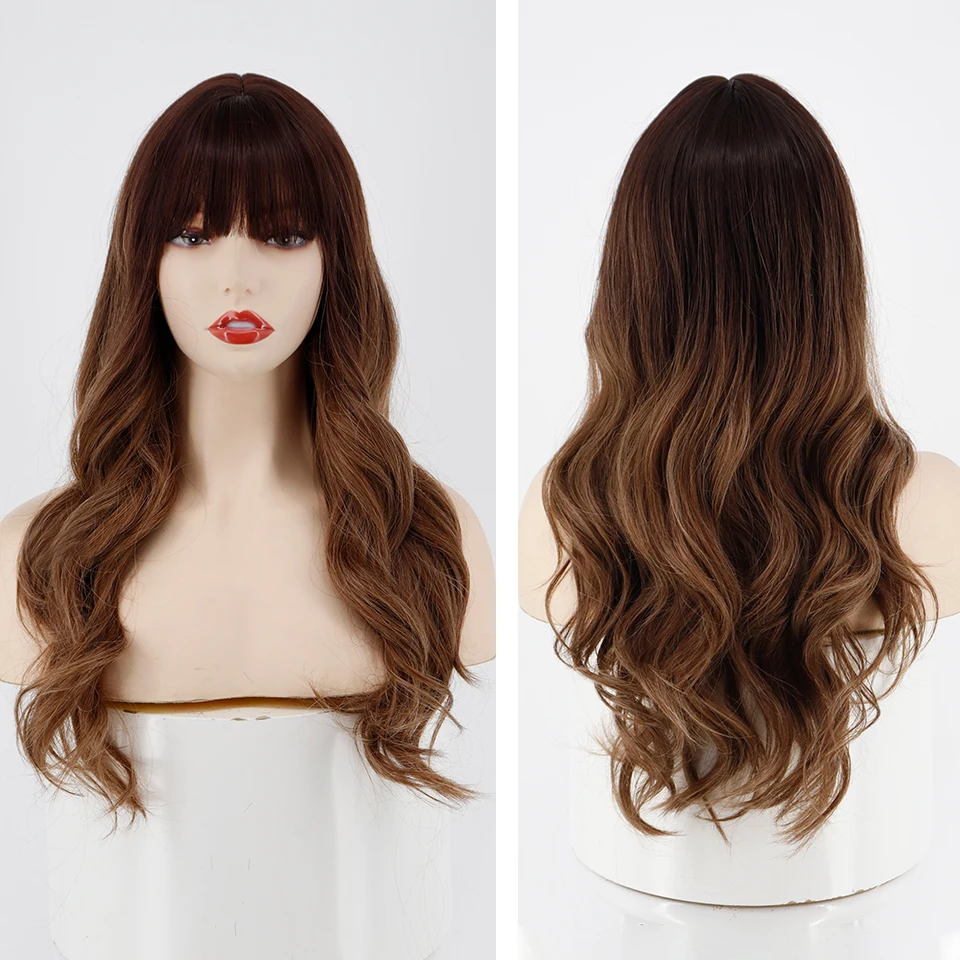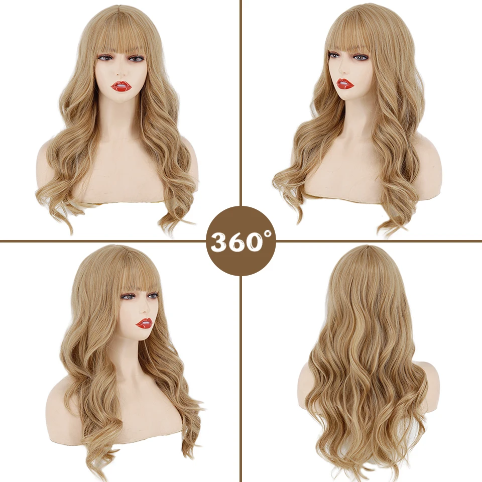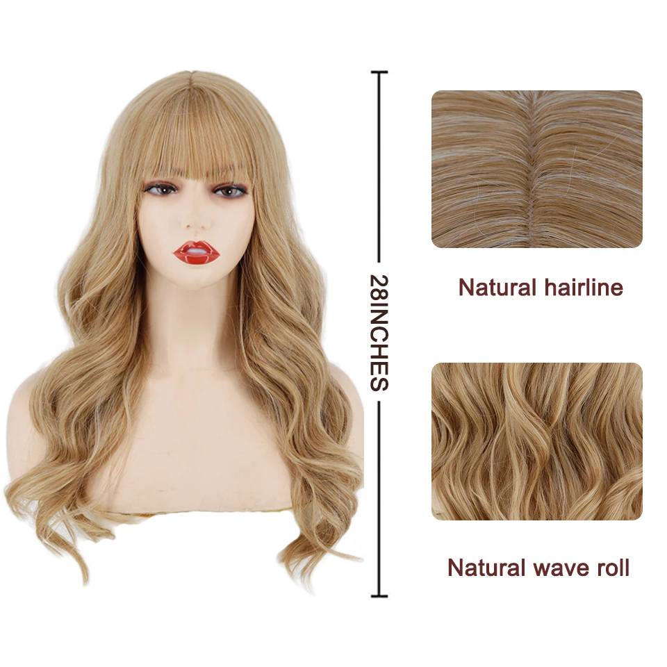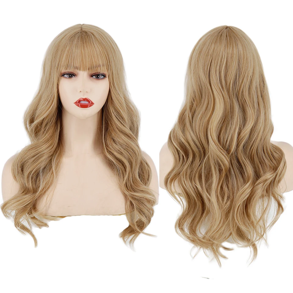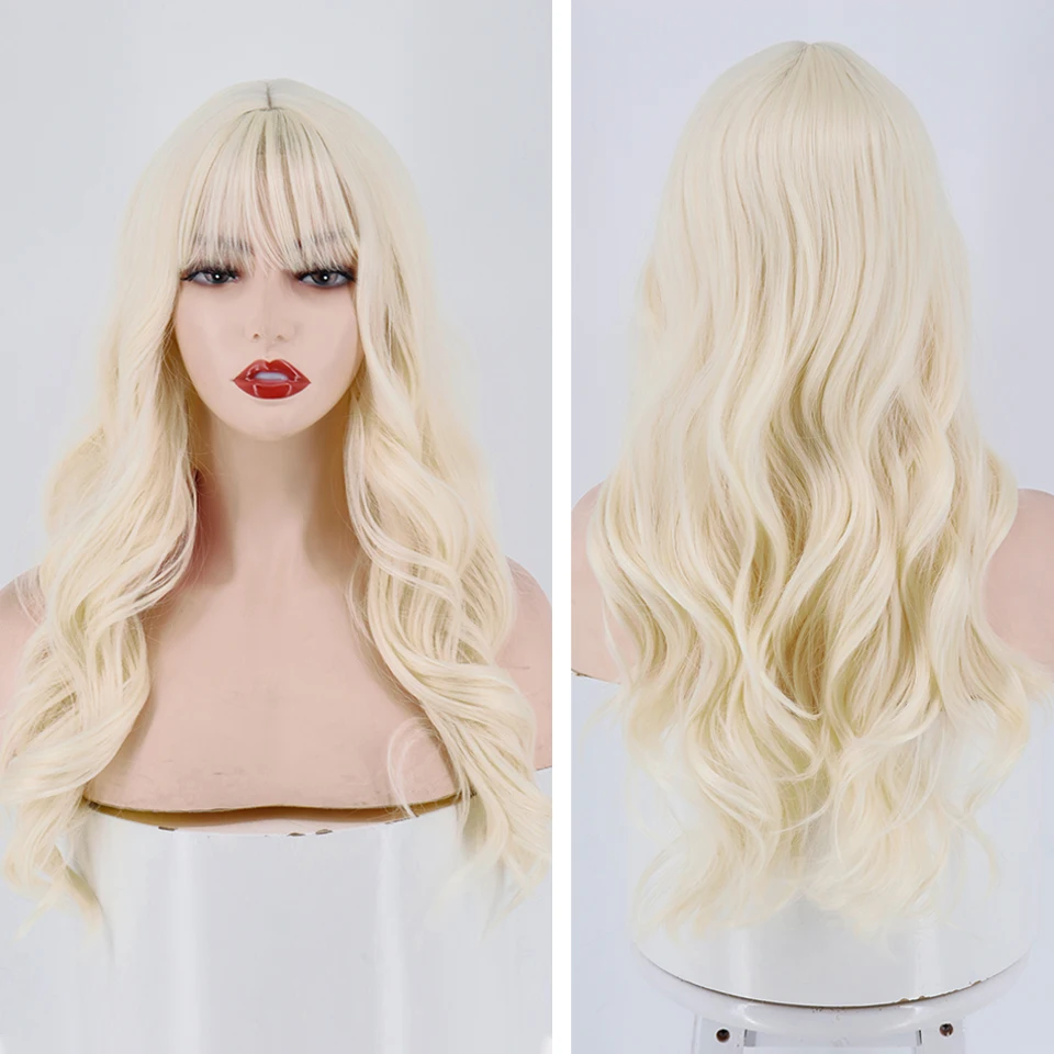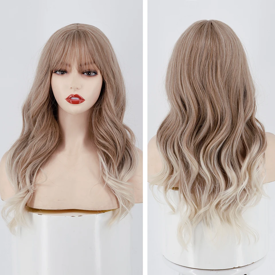 Синтетический парик блонд с челкой, длинные волнистые парики Омбре для белых женщин, светильник лые светлые темные корни, термостойкие волосы Nat