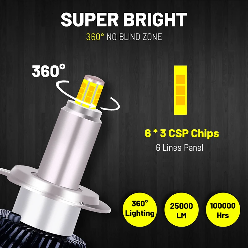 Светодиодный ная фара H1 H7 H11 25000LM 360 LED H8 Canbus без ошибок 9012 HIR2 9005 9006 HB3 HB4 H9 6000K CSP, высокие яркие фонари PTF