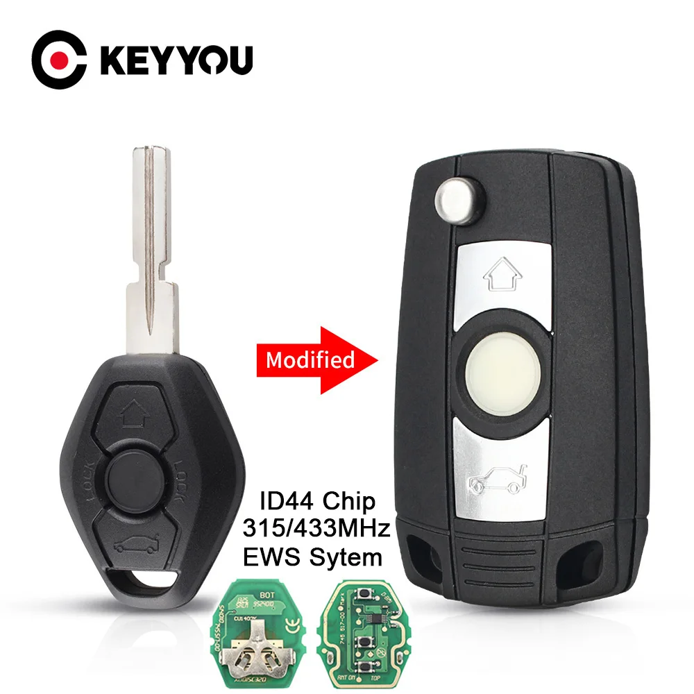 KEYYOU EWS системном 315433 МГц ID44 чип Модифицированная задняя панель автомобиля дистанционного ключа для BMW 1357 серии 318 325 330 525 530 540 E38 E39 E46