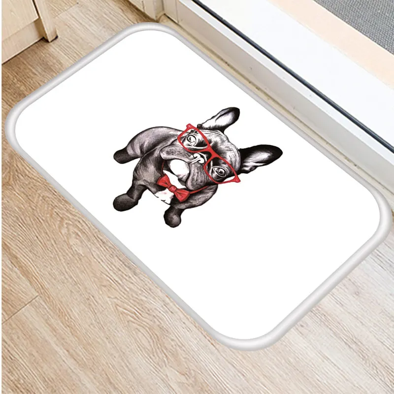 Коврик для входной двери, 40 х60 см, с изображением собаки, забавного мопса, французского бульдога, для кухни, гостиной, водонепроницаемый, Противоскользящий коврик для ванной