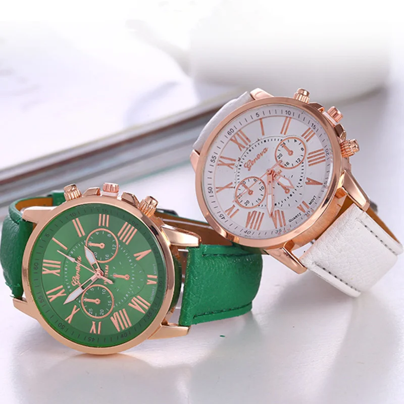 Часы женские кварцевые с римскими цифрами, из искусственной кожи