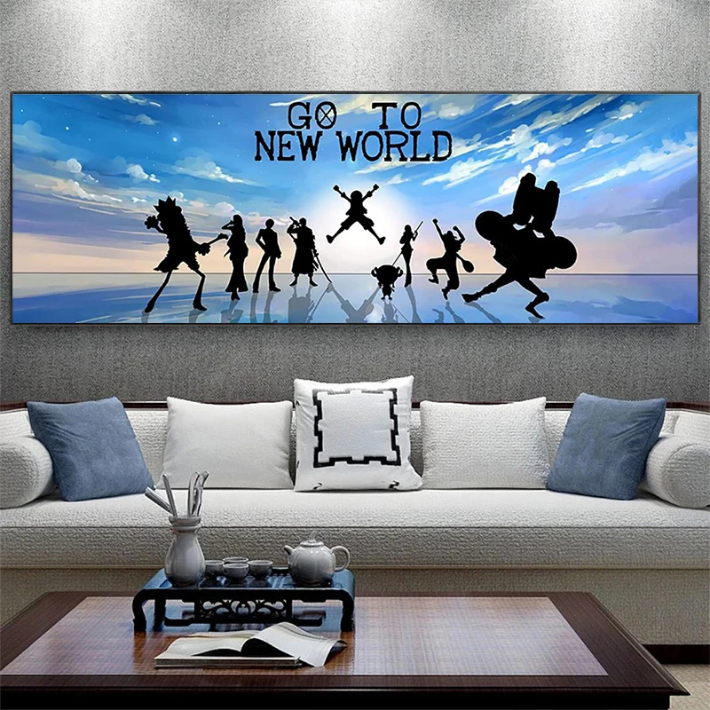 Пейзаж на холсте в японском стиле аниме, цельный плакат Луффи и печать, Художественная печать, для детской комнаты, домашнее настенное украшение