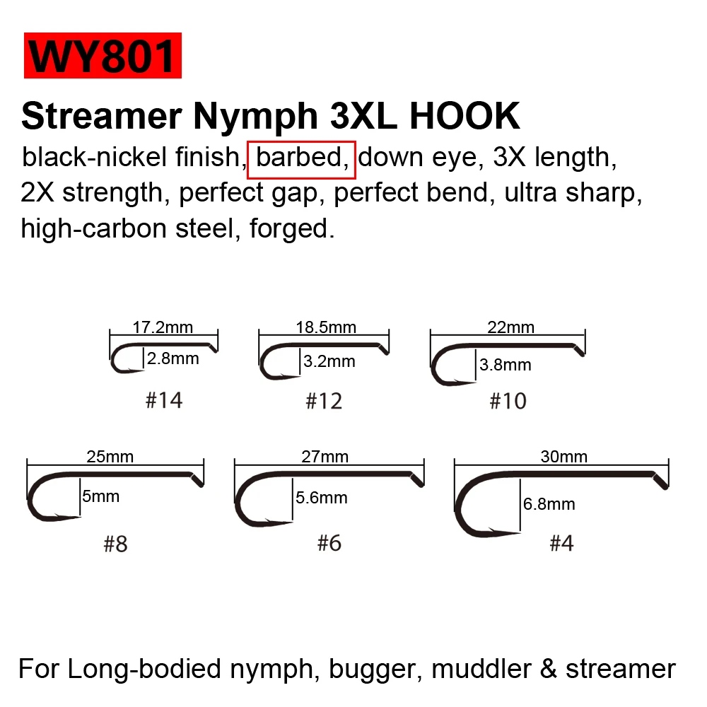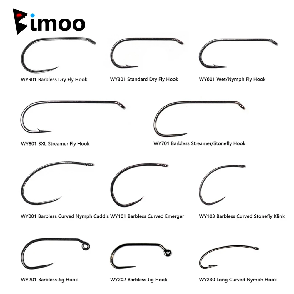 Bimoo 30 шт.упак. без бородки летать Крючки для привязывания Нимфа сухой мокрой стример джиг Fly Крючки лосось форель рыболовные крючки мушек Материал
