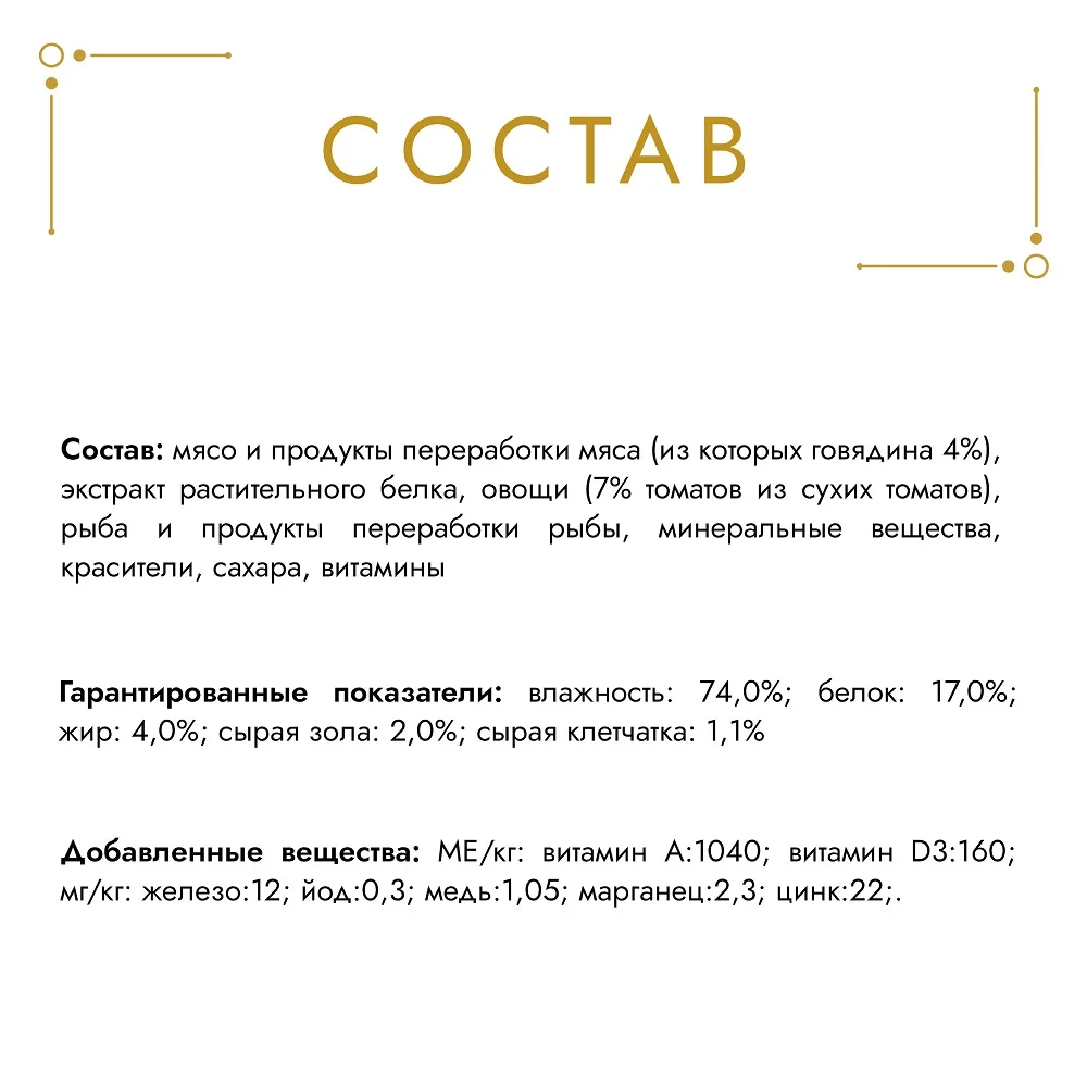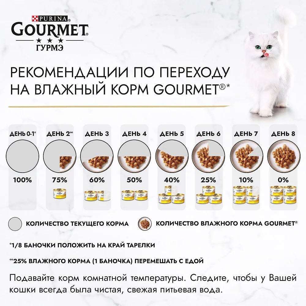 Ваша кошка — настоящий гурман, и порой ей сложно угодить. Корм Гурмэ® Голд Нежные биточки — это изысканное угощение с превосходным вкусом, которым ваша кошка будет наслаждаться каждый день. Ваш гурман оценит нежнейшие кусочки с мясом или рыбой, приготовленные в аппетитном соусе. Корм Гурмэ® Голд Нежные биточки — изысканное угощение на каждый день.