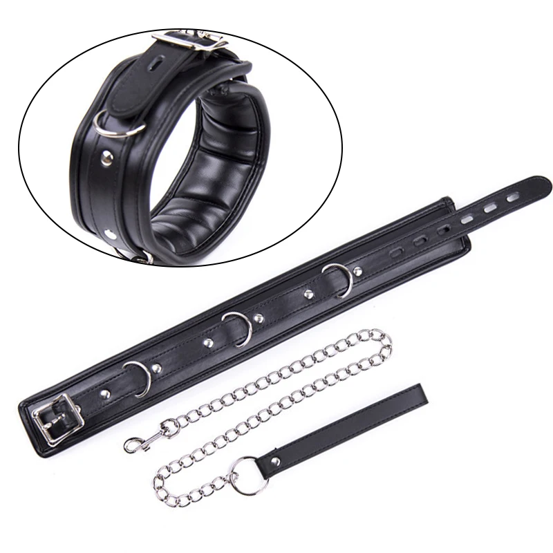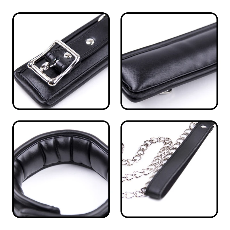 Взрослые игры или ведомого ограничения из искусственной кожи звено цепи шеи воротник ручной лодыжки манжеты блокировки фетиш бдсм комплект Секс-игрушки для пар