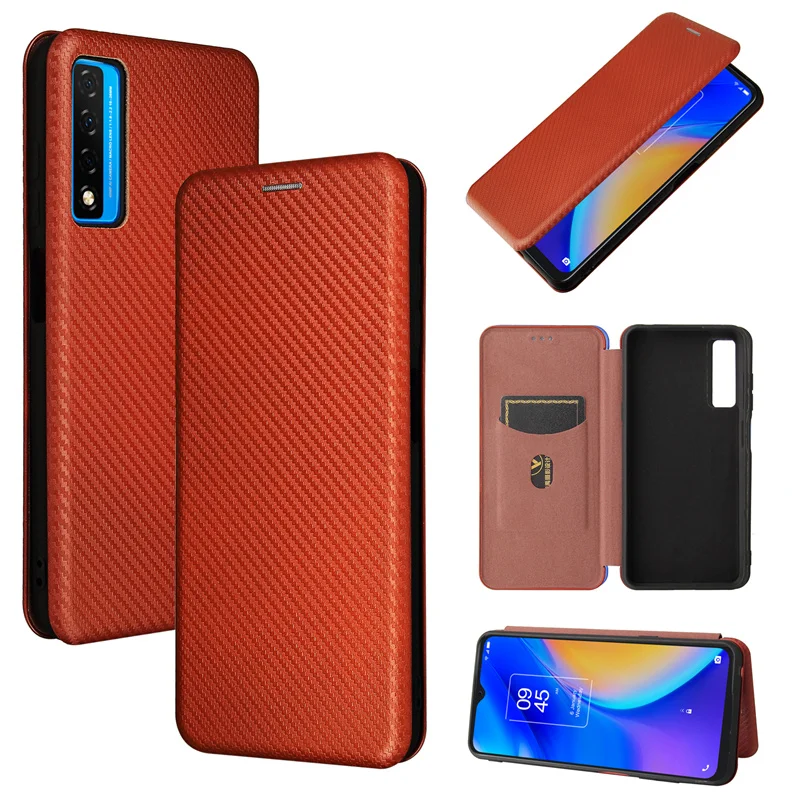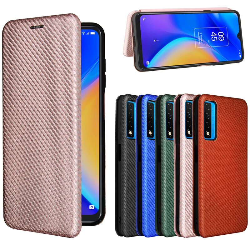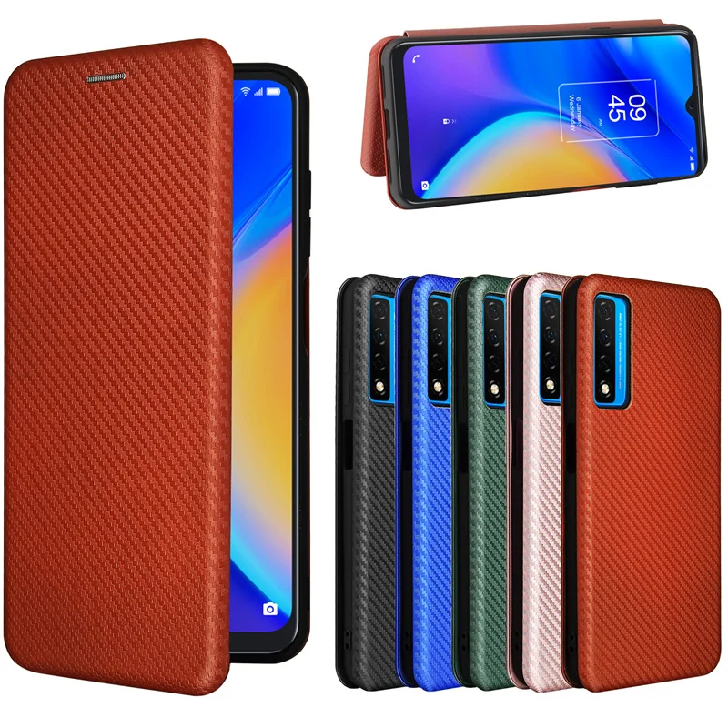 Чехол для TCL 20L Plus 6,67 дюйма, кожаный чехол-книжка из углеродного волокна для TCL20L + деловой Магнитный кошелек с отделением для карт, тонкий Чехол