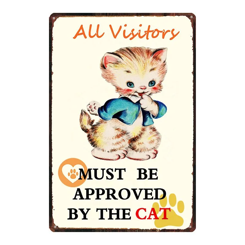 Все посетители должны быть одобрены кошкой Забавный знак винтажный ...
