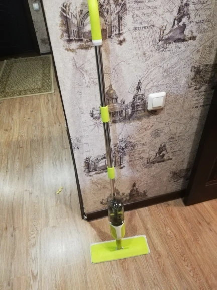 Швабра крепкая, хорошо справляется со своими обязанностями. Хорошо подходит для быстрой уборки ламината и кафельной плитки. Удобно, что есть распылитель и прямо во время уборки можно им пользоваться, не наклоняясь. Боюсь, что липучки на швабре долго не протянут. Хорошо бы, чтобы на тряпках были нашиты резинки для дополнительного крепления к швабре. Брал за 530 руб. Спасибо.