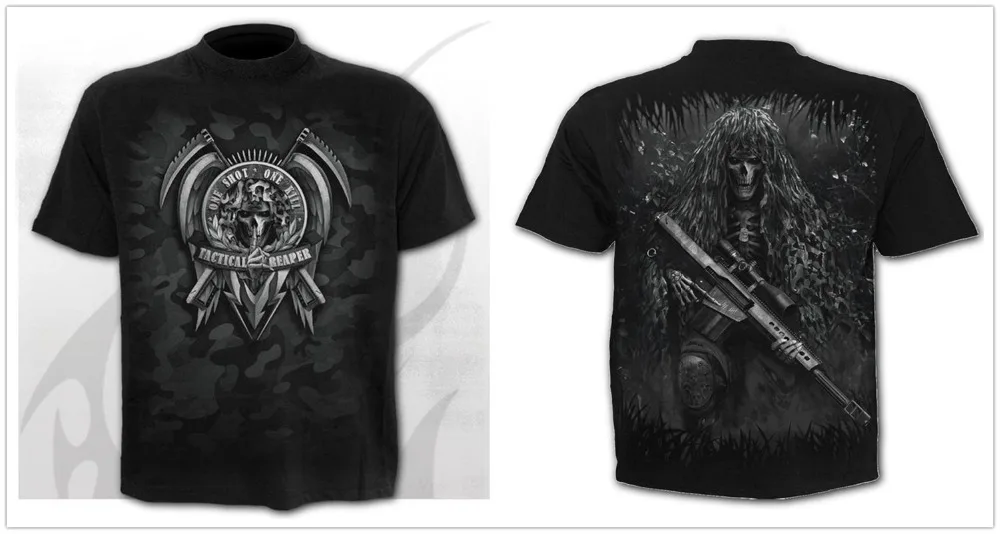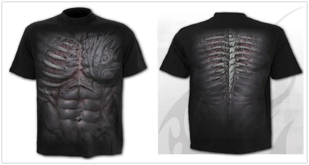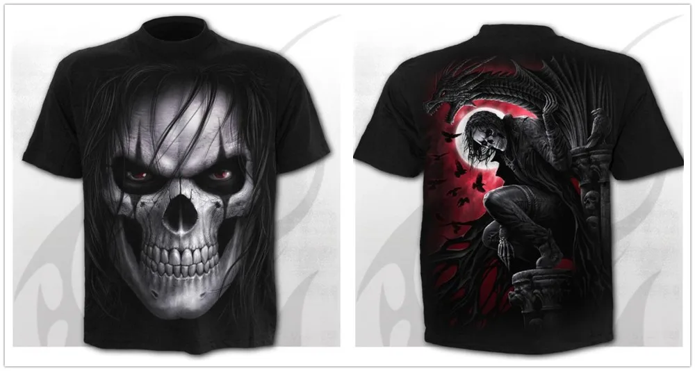 Жутким черепом Футболка мужская 3d в стиле панк-рок, рубашка в готи...