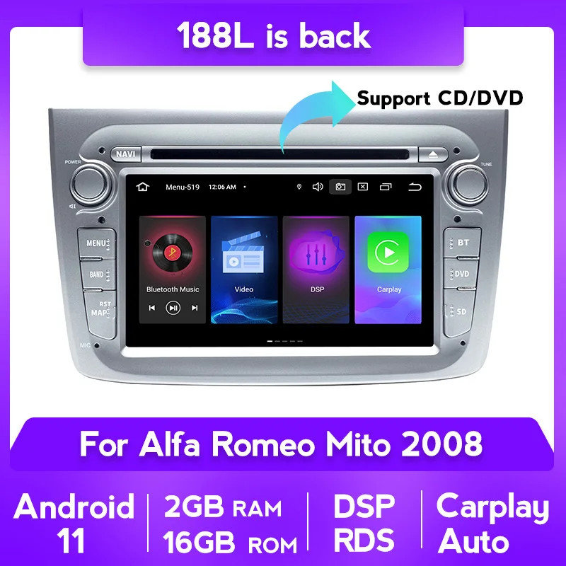 4 ГБ, 64 ГБ, 1 Din Android 11 BT автомобильный мультимедийный плеер для Alfa Romeo 2008- CAN-BUS Авто Радио Видео DVD GPS навигации Системы DVR