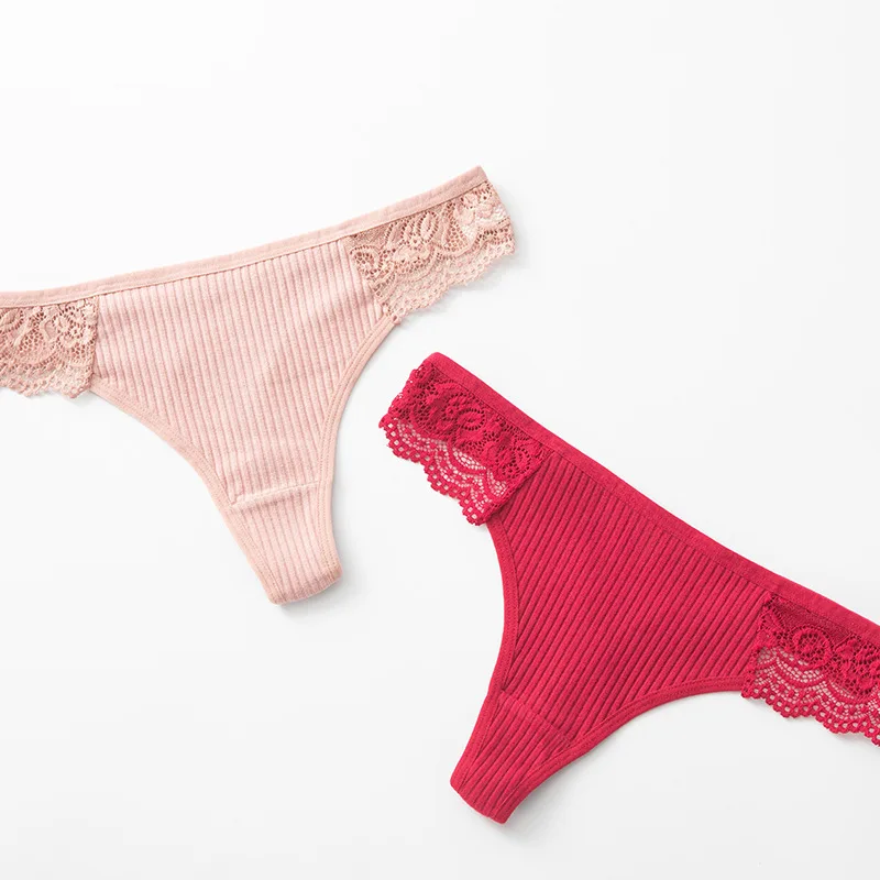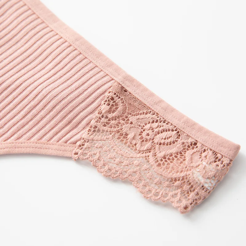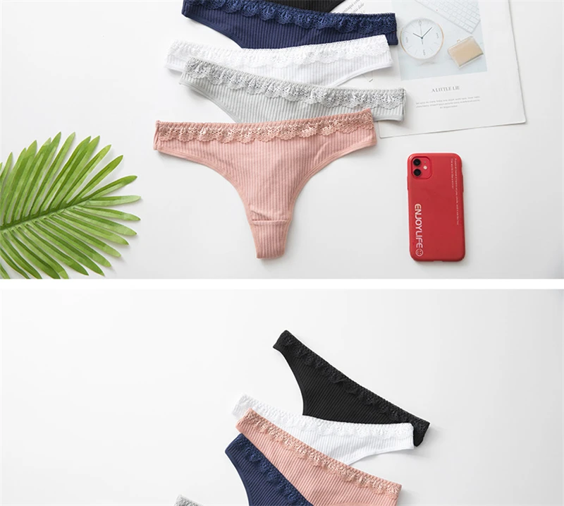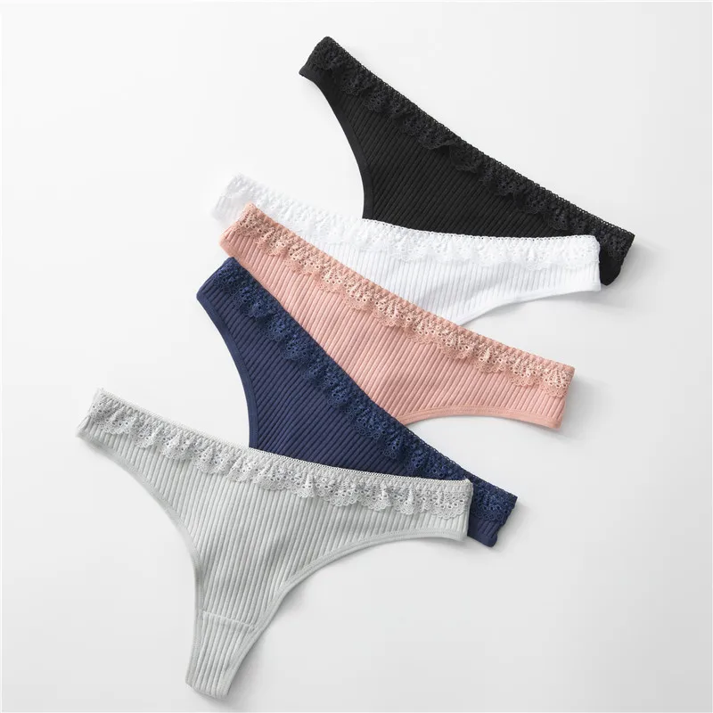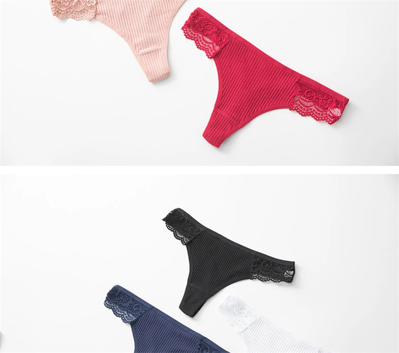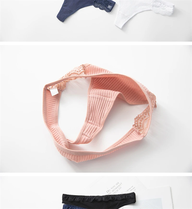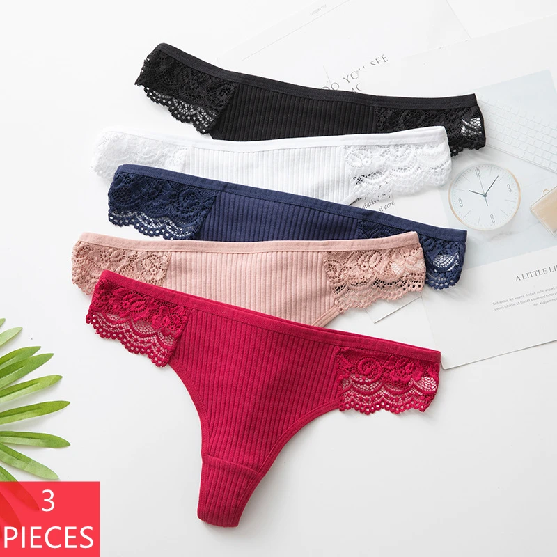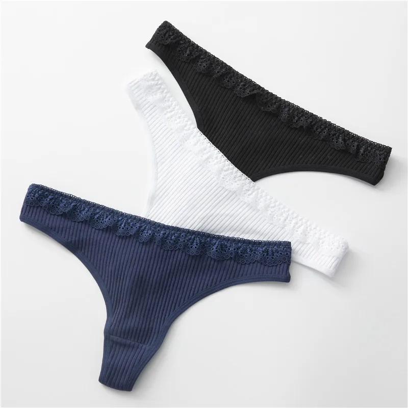 Трусы-стринги женские хлопковые кружевные с низкой талией, 3 шт.