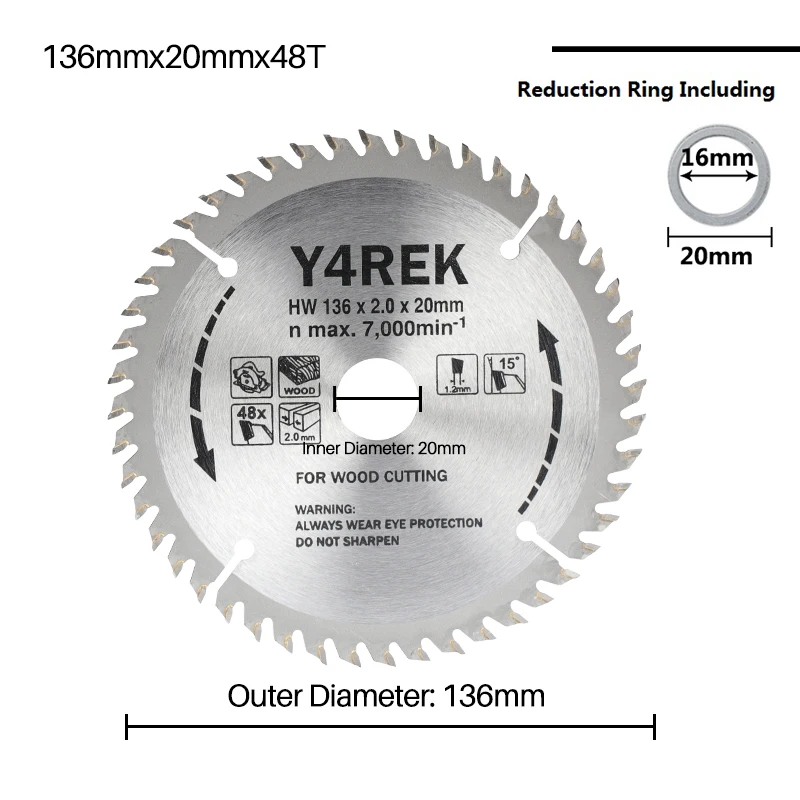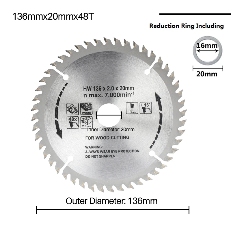 Диск для циркулярной пилы CMCP 136 мм, диск для резки дерева с 48 зубцами, диаметр отверстия 20 мм, твердосплавное лезвие для пилы TCT, инструменты для деревообработки
