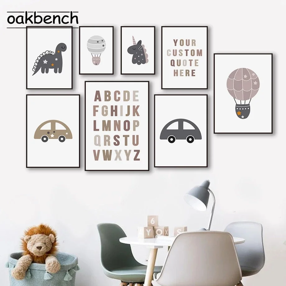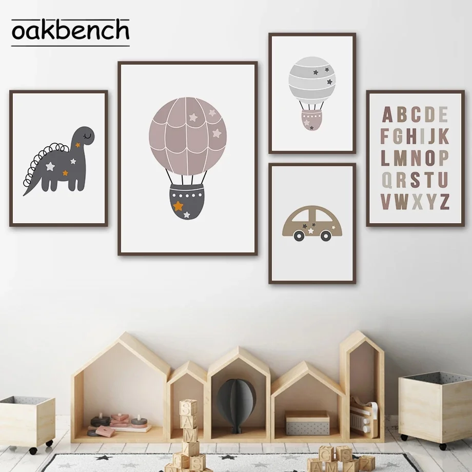 Постер для детской комнаты машинки Художественная печать с АБВ алфавитом холст Рисование воздушный шар Плакаты куртка с принтом "динозавр" Nordic настенные панно детская комната Настенный декор