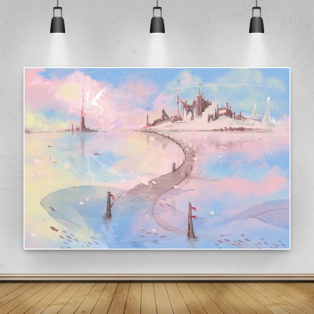 Красивый фон для фотосъемки с изображением замка из мультфильма сказочный мир день рождения фотостудия реквизит фоны под заказ