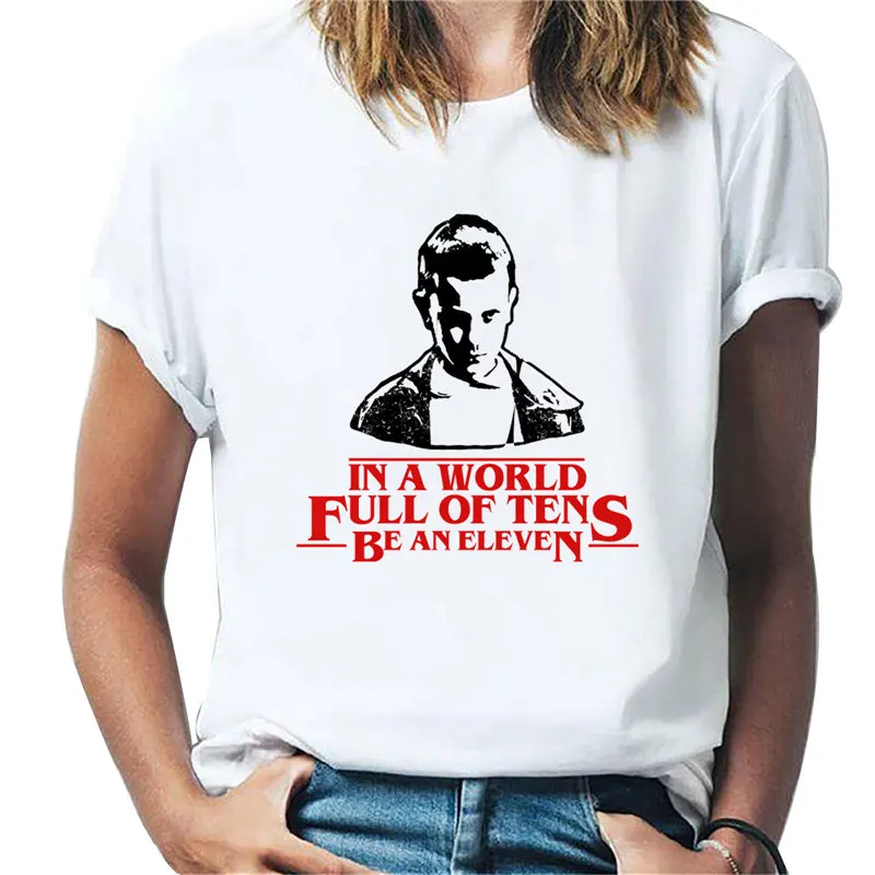 2021 летняя модная женская футболка с надписью очень странные дела, футболка с надписью 11, Женская забавная футболка с графическим принтом в стиле Харадзюку, топ, футболка