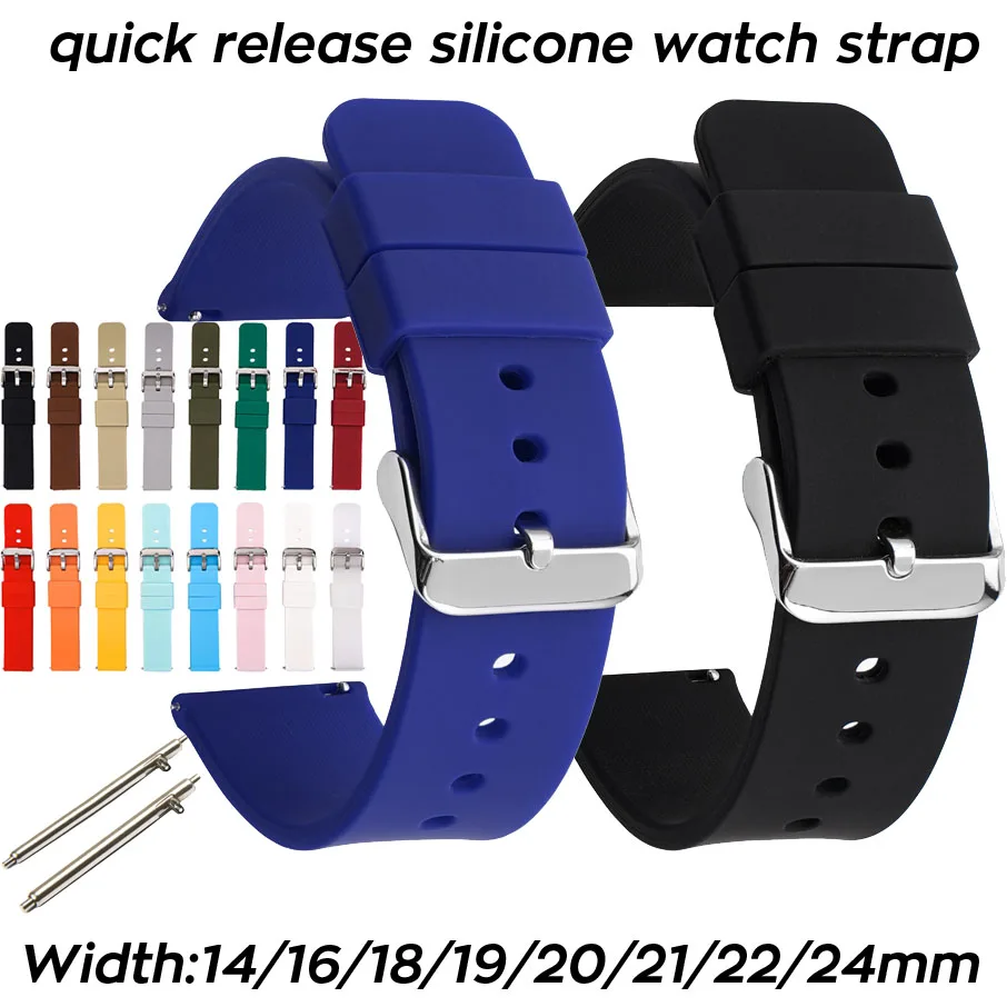 Быстросъемный ремешок для наручных часов для Huawei Смарт-часы с силиконовым ремешком для Samsung активные часы 14/16/18/19/20/21/22/24 мм Резиновая лента