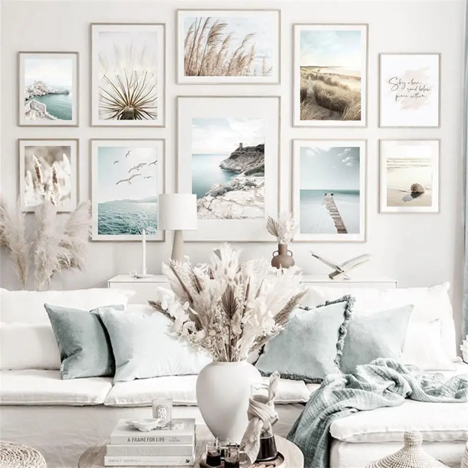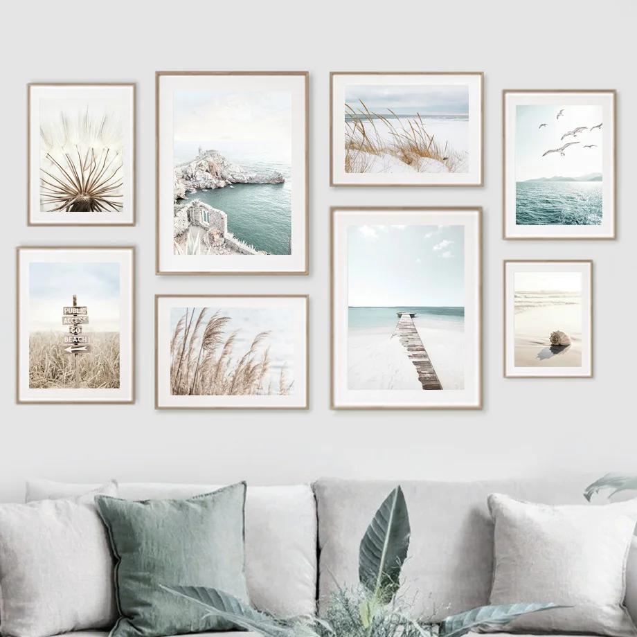 Постер в скандинавском стиле, трава, тростник, морской волк, мост, раковина, натуральное настенное искусство, холст, живопись, принты, украшение для гостиной, Настенная картина