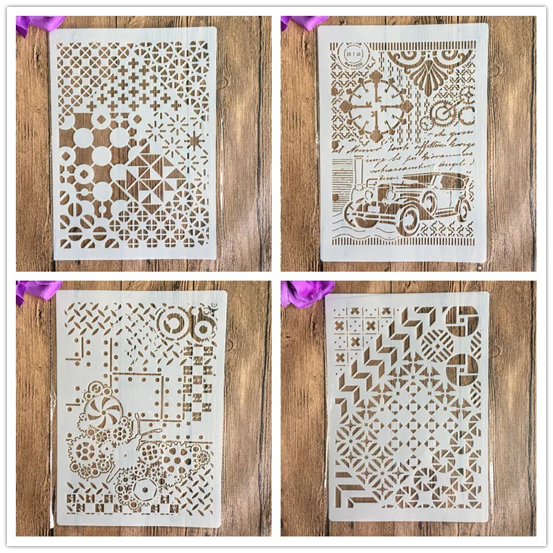 4 шт.компл. A4 механические Мандала Трафареты картины раскраски тиснение, Скрапбукинг альбом декоративные Шаблон трафарет торта